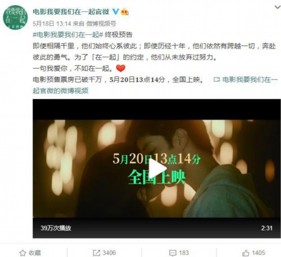 《我要我們在一起》改編自2013年豆瓣長帖《與我十年長跑的女友明天要嫁人了》,原作者根據自身經歷直播的愛情長跑故事,曾感動千萬網友。爆款長帖加上大力宣傳,該片也成為5月20日的票房冠軍。