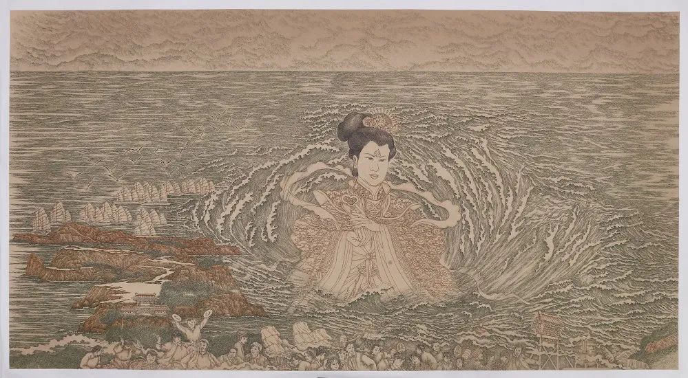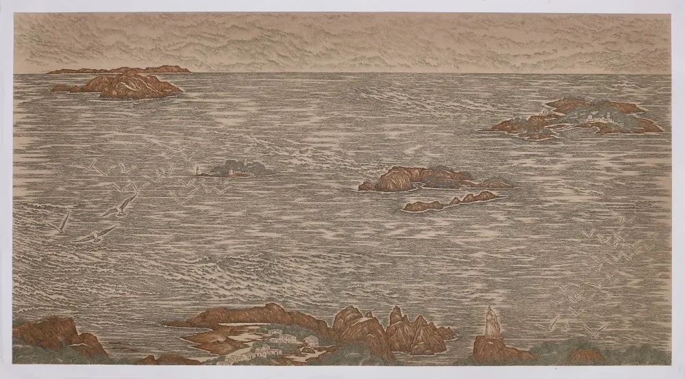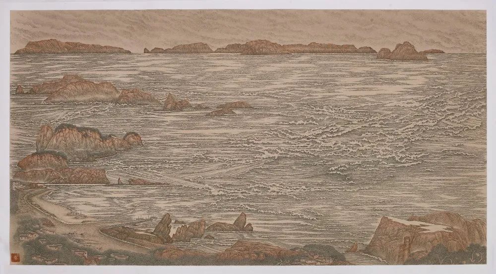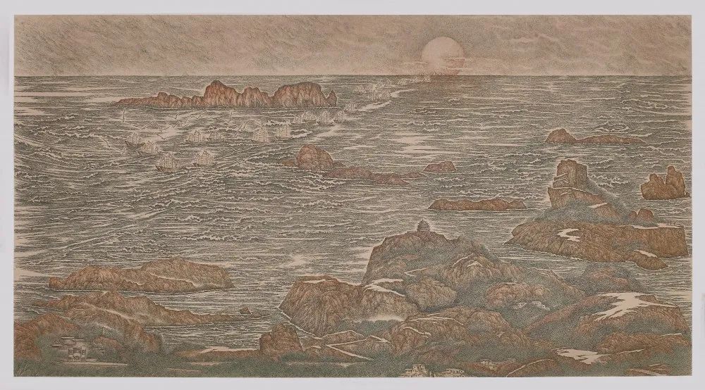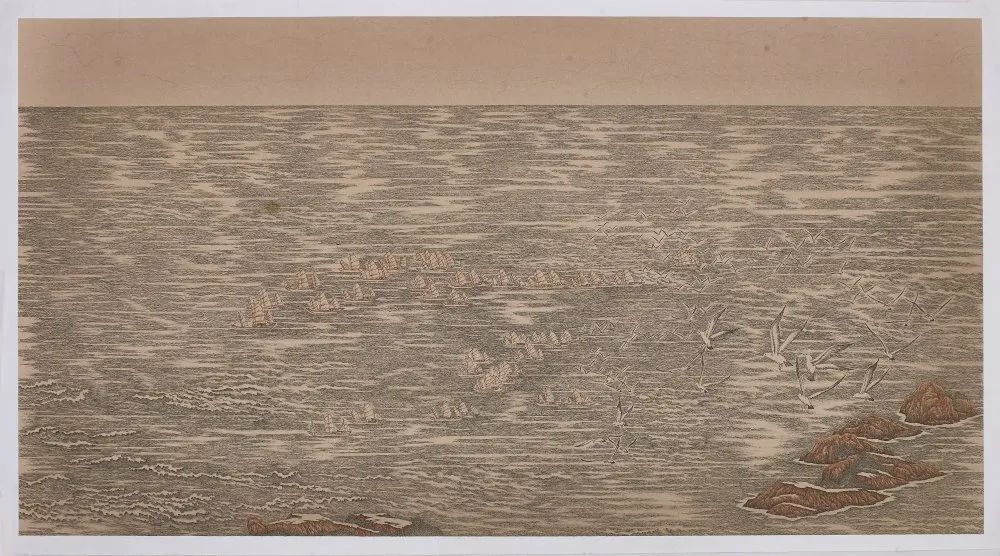 巧的是,浙江洞頭與臺灣一水相連,地緣相近、人緣相親、語言相通、文緣相承,此次,以侯傳芳、金國斌、吳聘真、葉向榮、呂相國等藝術家組成的創作團隊,繼完成《八百里甌江圖》之後,于2020年啟始,歷時一年半余,用獨特的鋼筆畫技法,以甌江入海口的半屏山為開篇,順江入海,延綿海峽,直至高雄半屏山,創作了《兩岸半屏山》山海長卷,展現了兩岸半屏山山水相連、人文相通的歷史淵源。《兩岸半屏山》長卷由12幅高1米、長2米的畫卷組成,總長24米。