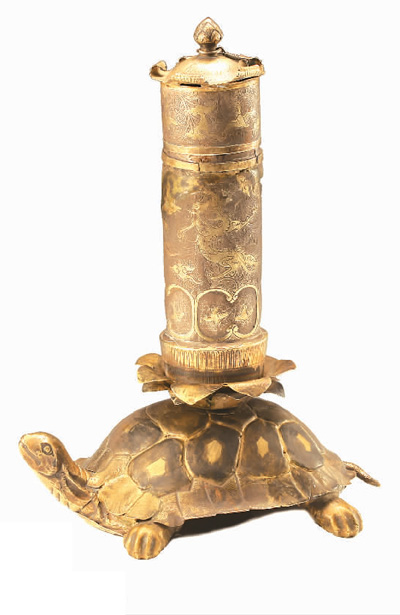 唐龜負論語玉燭酒籌鎏金銀筒 鎮江博物館供圖