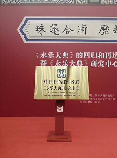 展覽開幕的同時,還舉辦了“國家圖書館《永樂大典》研究中心”成立揭牌儀式。該中心的成立旨在聯係組織國內外專家學者,對《永樂大典》進行更全面、更深入的研究,展示推廣其具有當代價值、世界意義的文化精髓。
