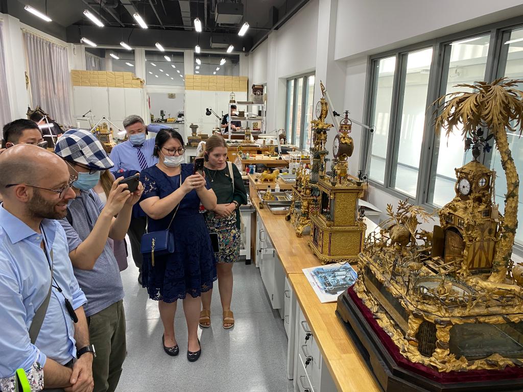 駐華外交官觀賞修復後的古鐘表。新華社記者潘潔 攝