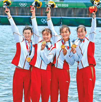 在賽艇賽場,由崔曉桐、呂揚、張靈、陳雲霞組成的中國隊以6分05秒13奪得女子四人雙槳金牌,為中國賽艇隊時隔13年再奪該項目奧運冠軍,並刷新該項目世界最好成績。中國隊選手張亮/劉治宇奪得男子雙人雙槳銅牌,這是中國男子賽艇獲得的首枚奧運獎牌。