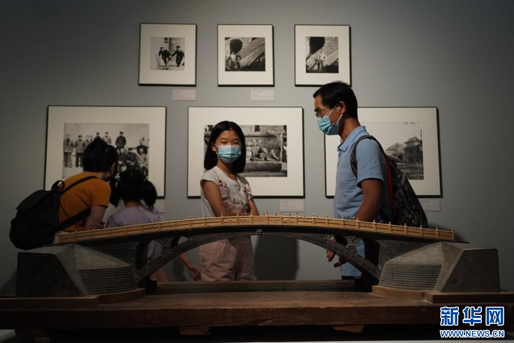 8月14日,觀眾在觀看“棟梁——梁思成誕辰一百二十周年文獻展”中的安濟橋(趙州橋)模型。 新華社記者 陳鐘昊 攝