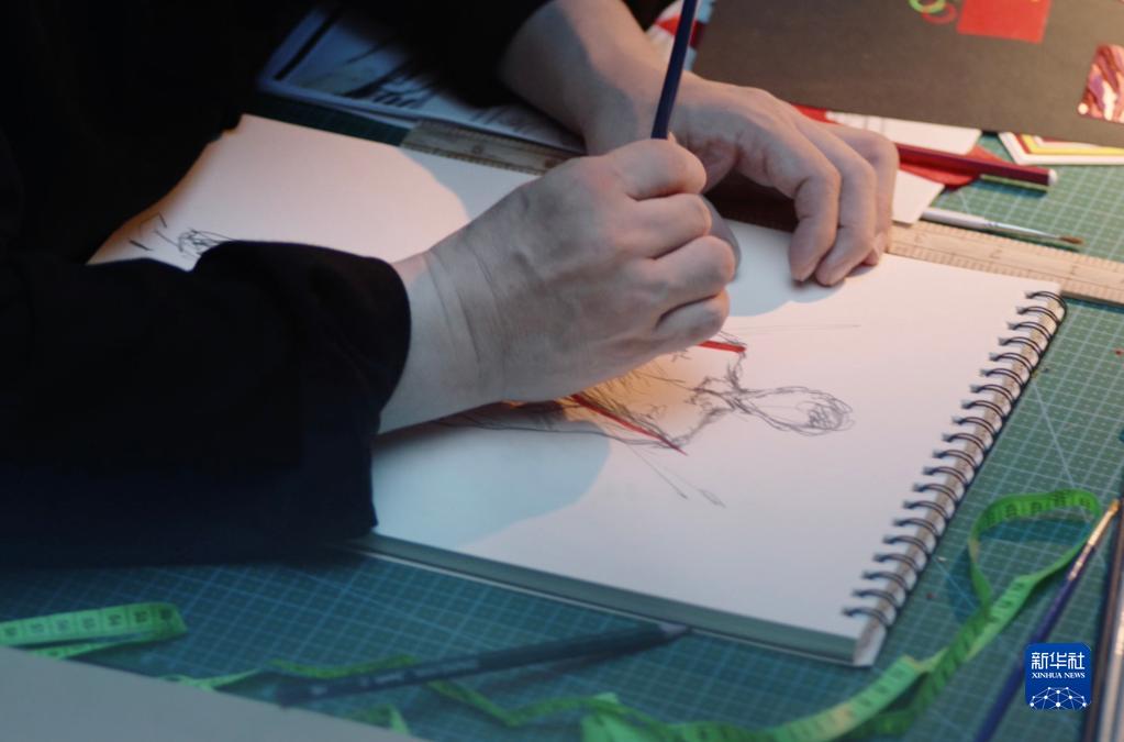 葉錦添在設計“龍服”草圖(資料照片)。新華社發(受訪者提供)