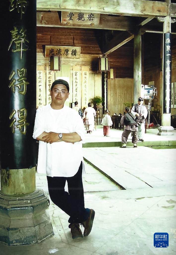 葉錦添在電影《臥虎藏龍》外景地拍攝現場(1999年9月19日攝)。新華社發(受訪者提供)