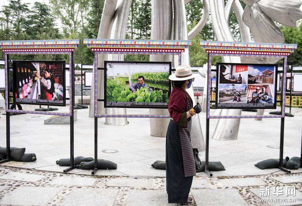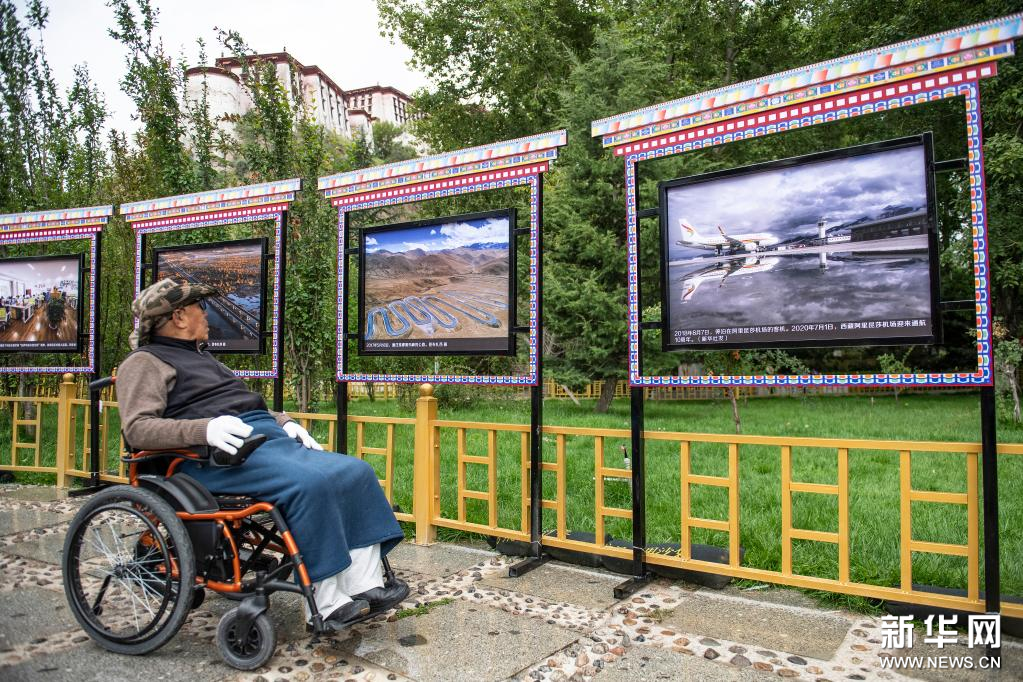 8月25日,觀眾在宗角祿康公園觀賞慶祝西藏和平解放70周年影像展。當日,“西藏·70——慶祝西藏和平解放70周年影像展”在拉薩布達拉宮腳下的宗角祿康公園開幕。本次展覽分為“波瀾壯闊的歷史進程”“新時代的輝煌成就”兩部分,編選了時間跨度達70年的200余幅攝影作品,集中展現了西藏70年來社會發展巨變、輝煌建設成就和西藏各族人民的幸福安康生活。新華社記者 孫瑞博 攝