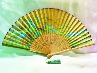 故宮博物院推出的《千里江山圖》係列文創中的折扇 本報記者李韻攝/光明圖片