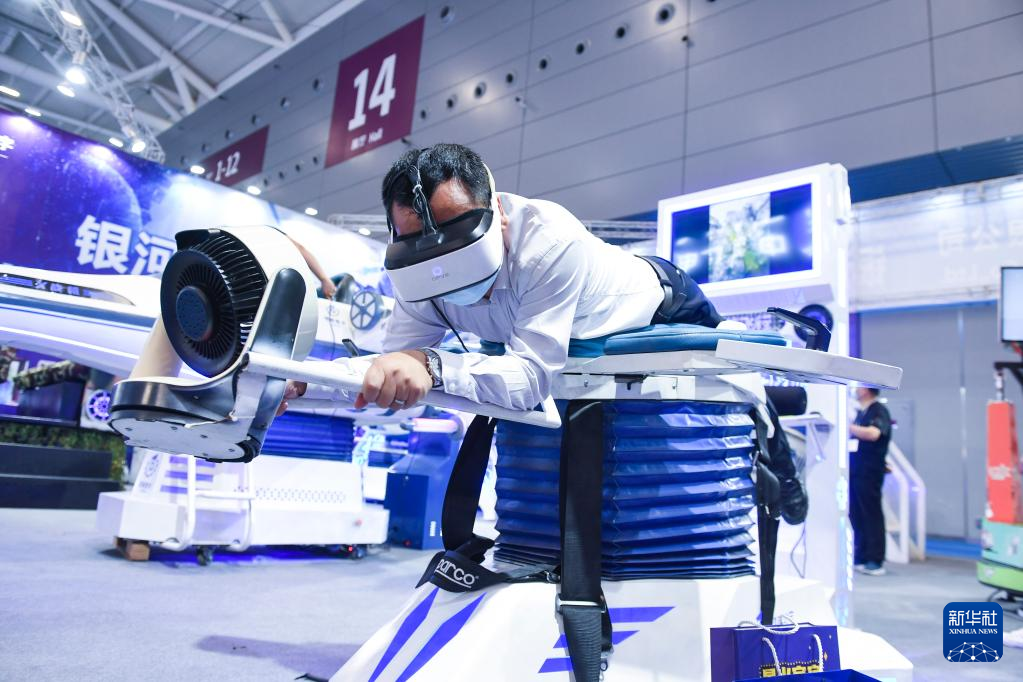 9月23日,參觀者在第十七屆文博會上體驗VR遊戲。新華社記者 毛思倩 攝