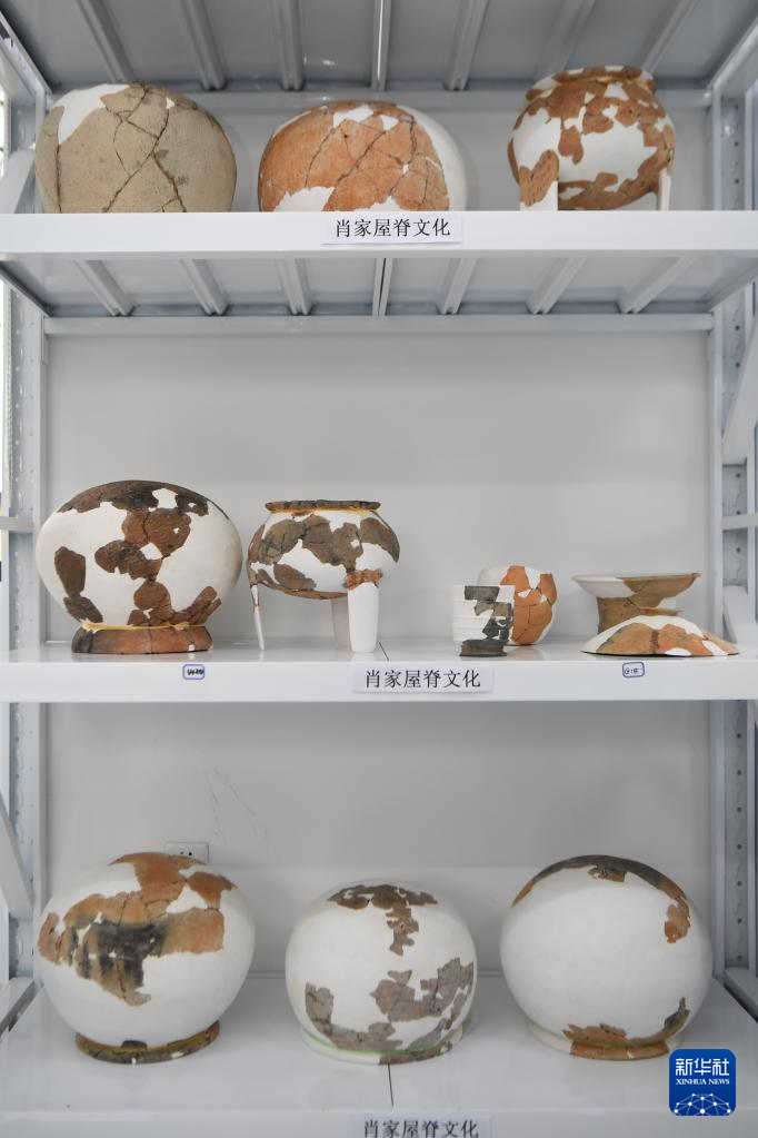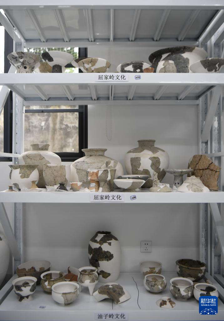 這是10月9日在湖南常德澧縣澧陽平原考古工作站拍攝的雞叫城遺址出土的陶器。新華社記者 薛宇舸 攝
