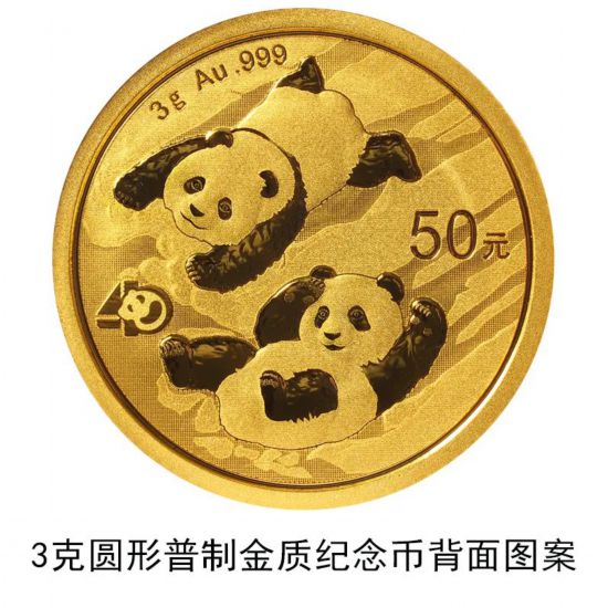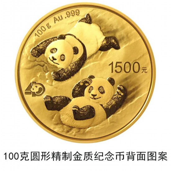 據介紹,該套貴金屬紀念幣正面圖案均為北京天壇祈年殿,並刊國名、年號;背面圖案均為大熊貓滑雪嬉戲場景,輔以“熊貓金幣發行40周年標識”元素,並刊面額、重量及成色。