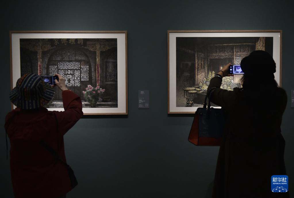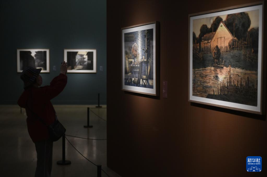10月17日,觀眾在中國美術館拍攝展出作品“鄉情係列”。 新華社記者 魯鵬 攝