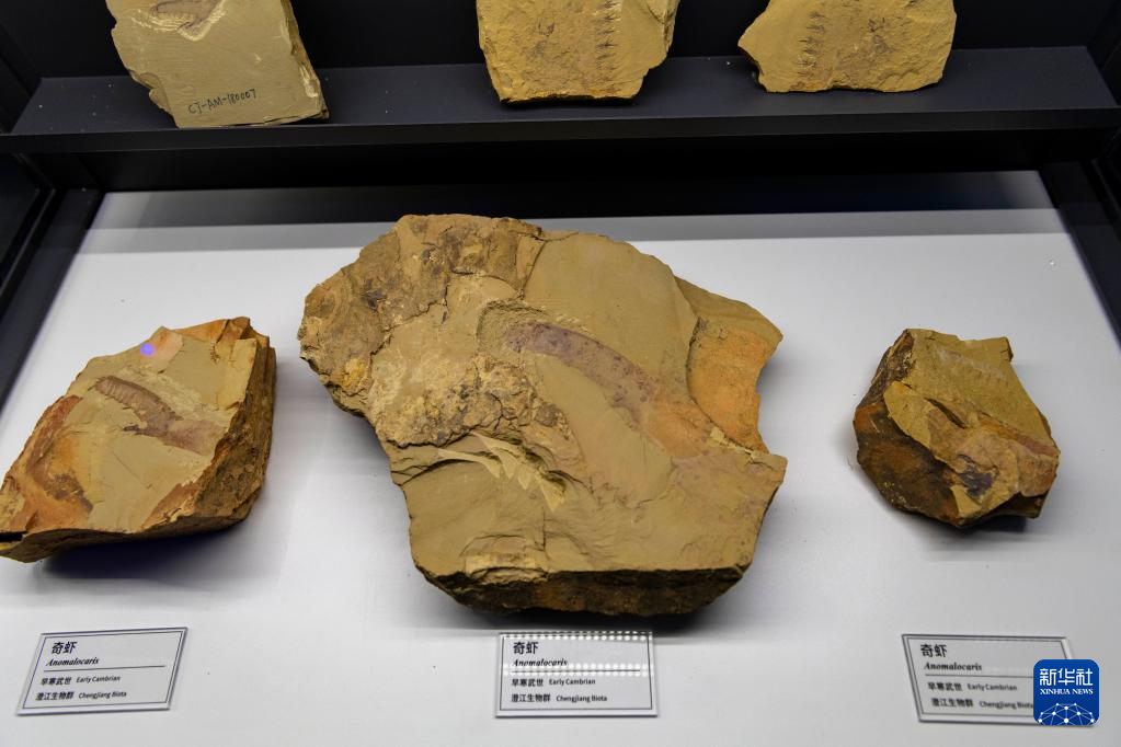這是10月14日在澄江化石地世界自然遺產博物館拍攝的奇蝦螯肢化石。新華社記者 陳欣波 攝