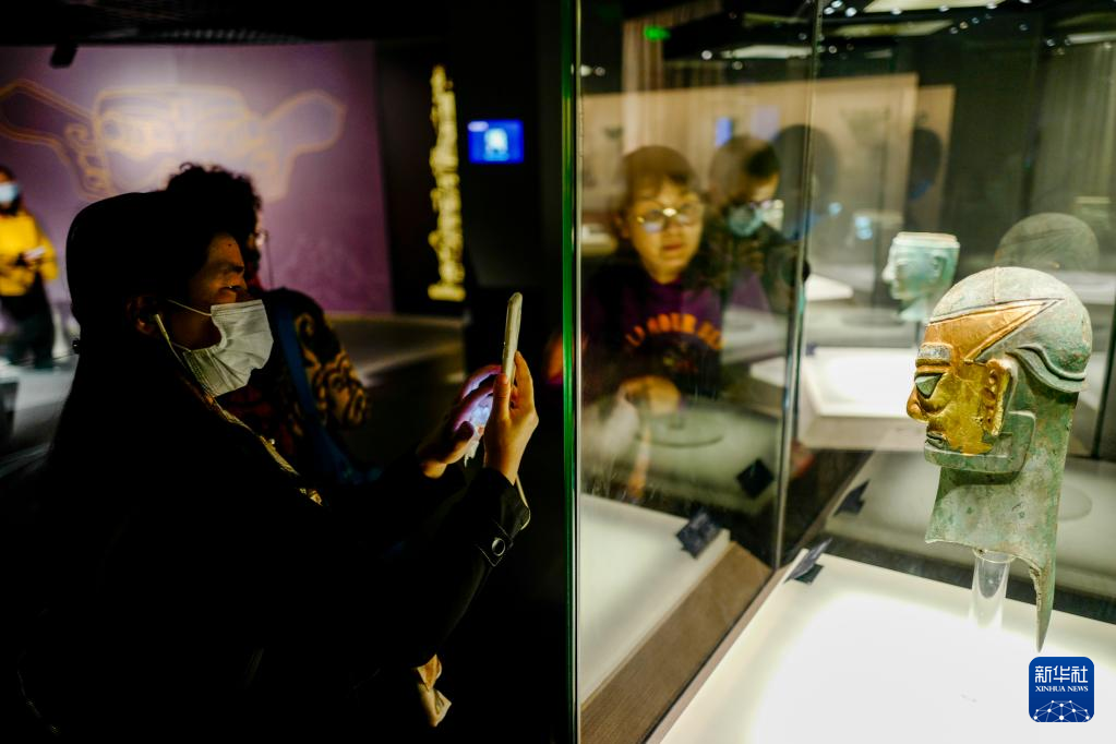 10月29日,參觀者在三星堆博物館內欣賞展品。新華社記者 劉潺 攝