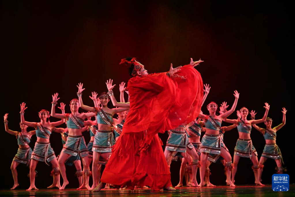 11月12日,福建藝術職業學院的演員在福建舞蹈“百合花獎”決賽中表演《潮》。新華社發(周義 攝)