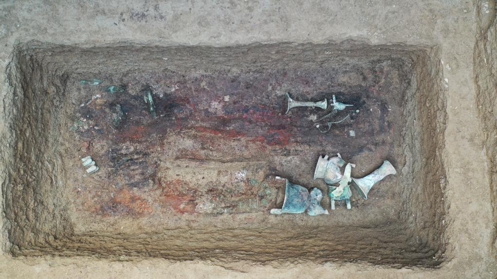 這是邵家棚遺址中的一座商代墓葬,其中出土了數量豐富的青銅器。圖片由安陽市文物考古研究所提供