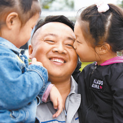 沈海高速深圳至汕尾段改擴建項目建設者楊興義和家人團聚過節。