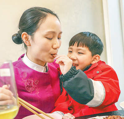 中國鐵路成都局集團有限公司重慶客運段的列車長羅敏與家人吃團圓飯。