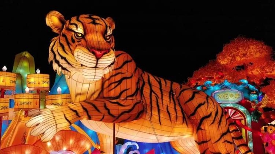 燈會的大型燈組多數以老虎為設計原型,同時融入莘莊梅花、吉祥物“莘寶”等元素。既有憨態可掬的虎寶寶,也有霸氣十足的山中猛虎,各式各樣的老虎花燈最受市民歡迎。