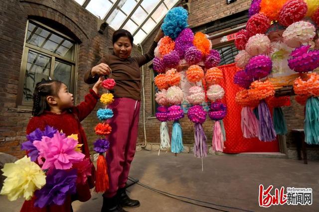 2022年2月10日,河北省邯鄲市峰峰礦區義井鎮東王看村村民在挂葦子燈。