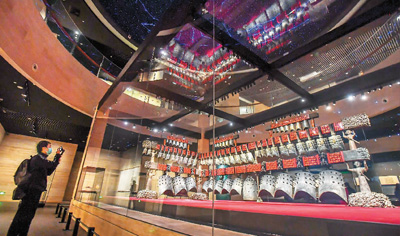 除了創新展陳,新館內的新設施、新技術也帶給觀眾更好的體驗。沉浸式編鐘演奏廳可以容納300人感受編鐘的天籟之音。館內配備的AR眼鏡,讓人一眼即可獲取文物信息;還有整牆大面積環繞投影,立體講述文物背後的故事。