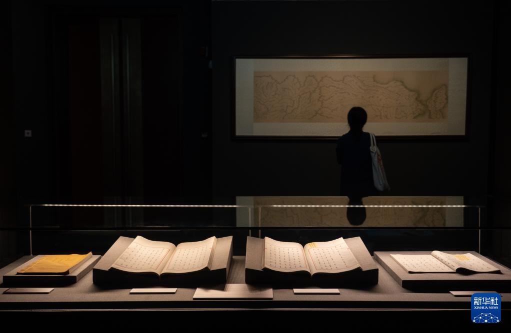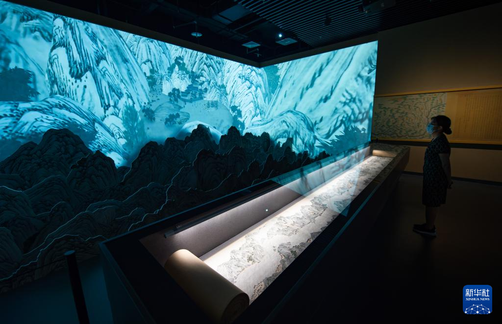7月13日,觀眾在“蘭臺翰墨 家國春秋——明清歷史檔案展”上觀看展品《金沙江上下兩遊山水全圖》。
