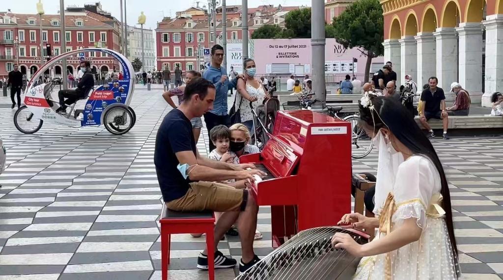 彭靜旋自小學習古箏,已在法國求學多年。她說,自己在法國街頭表演古箏的初衷非常簡單——“分享美好,分享音樂”,同時也期待“將古箏作為一個橋梁,讓更多法國人認識和了解我們的樂器”。
