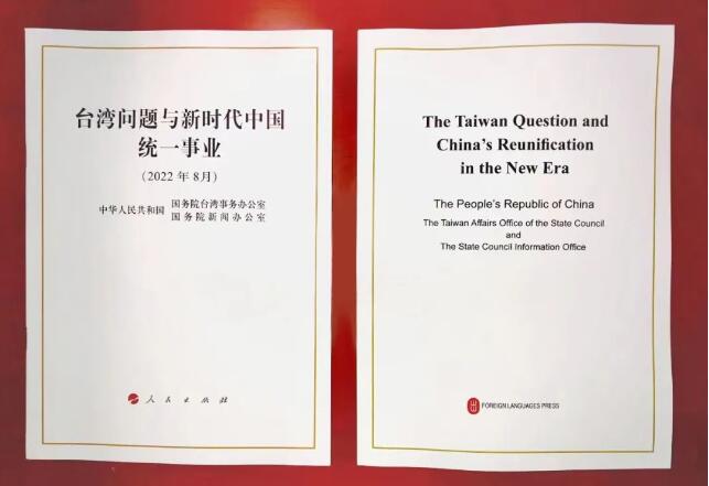 國務院臺灣事務辦公室、國務院新聞辦公室10日發表《臺灣問題與新時代中國統一事業》白皮書,進一步重申臺灣是中國的一部分的事實和現狀,展現中國共產黨和中國人民追求祖國統一的堅定意志和堅強決心,闡述中國共產黨和中國政府在新時代推進實現祖國統一的立場和政策。