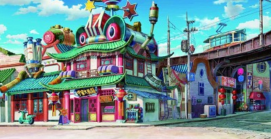 《衝出地球》的場景設計大量運用中國傳統建築元素。資料圖片