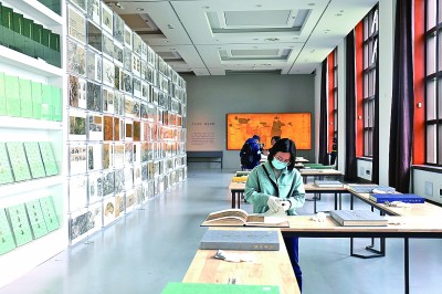 在第二屆全民閱讀大會舉辦的“盛世修典——‘中國歷代繪畫大係’”展覽上,一位讀者正在翻閱大係實體書籍。光明日報記者 韓寒攝/光明圖片