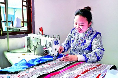 “既能提高自己的刺繡手藝,又能在家門口掙錢,真是太開心了。”王進敏說,她在車間做刺繡,收入極大改善了家庭生活。