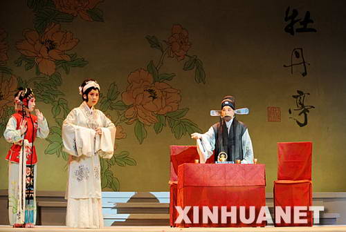 12月27日,江蘇省蘇州昆劇院演員在昆曲《牡丹亭》演出中。當日起,昆曲經典劇目青春版《牡丹亭》在江西撫州湯顯祖大劇院隆重上演。這是新版昆曲《牡丹亭》成劇後第一次來到它的原作者湯顯祖的故里演出,也是江蘇省蘇州昆劇院在全球范圍內的第163場演出。新華社發(周科攝)