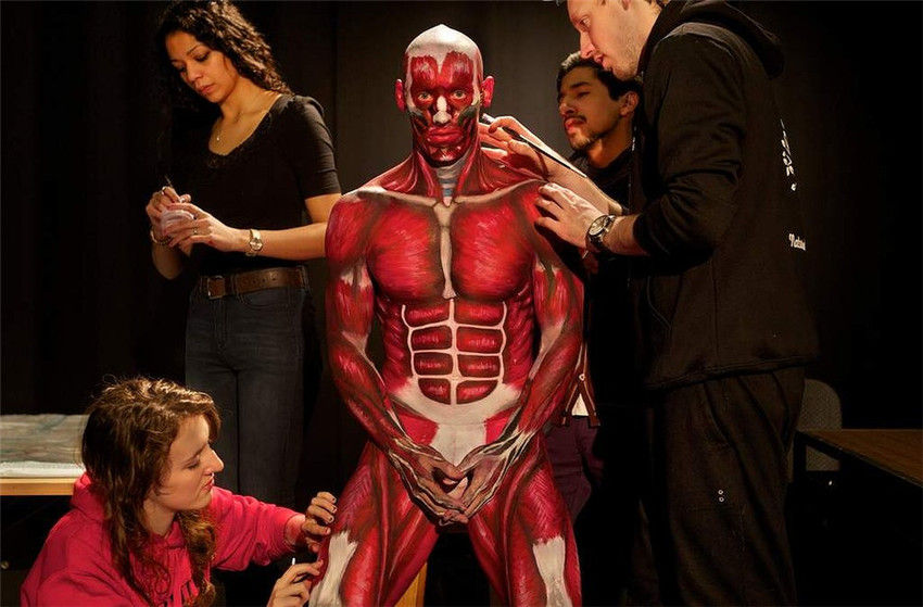 據澳大利亞《時代報》報道,澳大利亞墨爾本市皇家理工大學的教授別出新意,運用真人模特教授人體解剖課程。據悉,迪亞茲教授與五名藝術係的學生合作,利用人體彩繪,在模特身上畫出人體內部的構造。相較于毫無生命的塑膠模特,真人模特給予了學生更強烈的視覺效果。這些學生花費了約20小時的時間,在真人模特身上描繪出細致的骨骼及肌肉線條。之後模特兒還來到室外進行展示,吸引不少行人的眼球。模特在課程中會收緊肌肉,結合人體彩繪,讓學生們對人體結構有更直觀的了解。