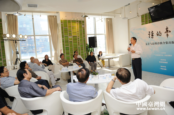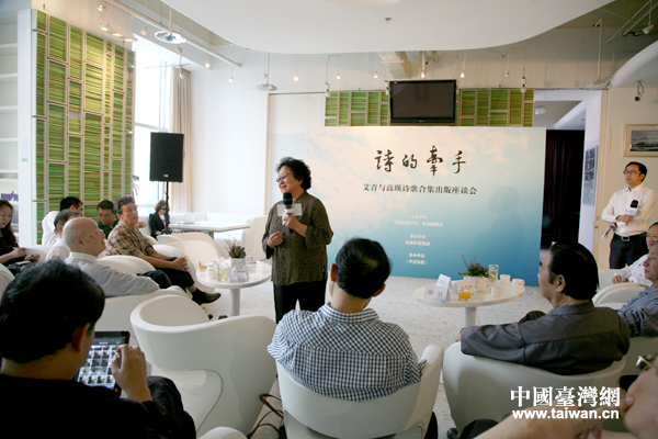 艾青與高瑛詩歌合集《詩的牽手》出版座談會在京舉行。中國詩歌學會、作家出版社、《文藝報》、《詩刊》、《時尚》雜志社等有關單位負責人,著名詩人、詩歌評論家屠岸、峭岩、張同吾、朱先樹等數十人出席了座談會。(中國臺灣網 普燕 攝)