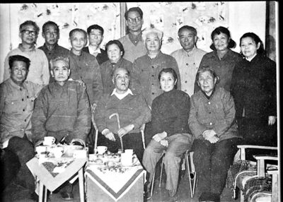 1982年11月,胡風八十壽辰時,與前來看望的路翎、綠原、牛漢(後排中間高個者)等友人合影。(人民文學出版社供圖)
