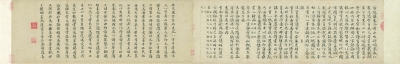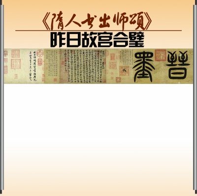 國寶級法書《隋人書出師頌》與其題跋首尾分離數十載,昨天終于在故宮博物院實現合璧,重新聚首。北京青年報記者獲悉,中國嘉德國際拍賣有限公司與紅樹白雲樓主人陸牧滔先生共同將此件重要文物捐贈故宮博物院。至此,不僅使故宮博物院補充了一件元代大儒的書法孤品,更為重要的是,合璧對于今後《出師頌》的傳承和中國早期書法史研究也很有意義。