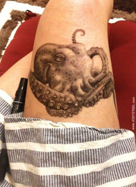 這位“天才畫家”名叫喬迪·斯蒂爾(Jodi Steel),目前在波士頓學習電影專業。像許多無聊的學生一樣,喬迪喜歡用涂鴉來打發無聊的上課時間。只不過,喬迪是在自己的大腿上作畫。盡管沒有受過專業訓練,喬迪的“真皮作品”卻完全像是出自大家之手。