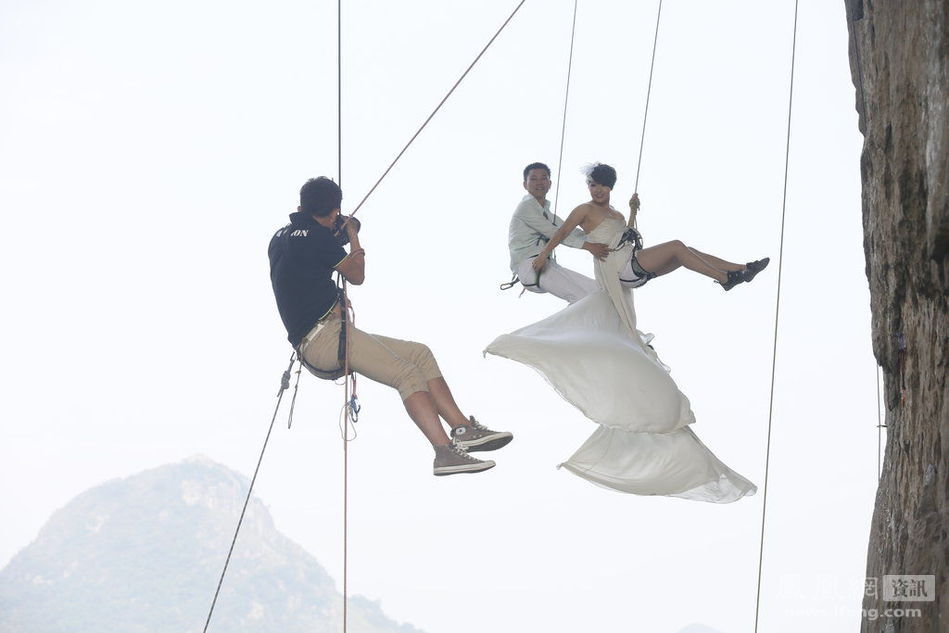 “女漢子”穿婚紗攀岩 拍攝酷炫婚紗照