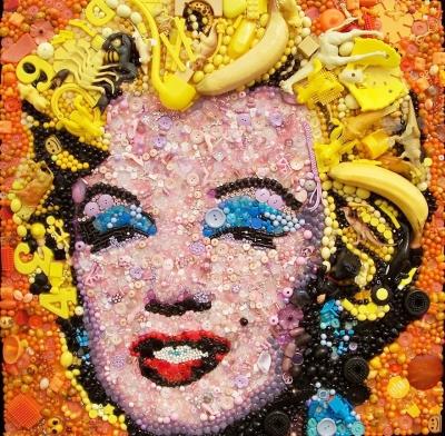 英國藝術家帕金斯,使用她所能找到的材料,如廢舊的紐扣、塑料玩具、樂高等,創造出了“塑經典”係列繪畫和雕像,這些繪畫和雕像包括了達芬奇的著名畫像蒙娜麗莎、愛因斯坦、曼德拉、夢露等等。這些作品幾乎都是由塑料零件制成的。