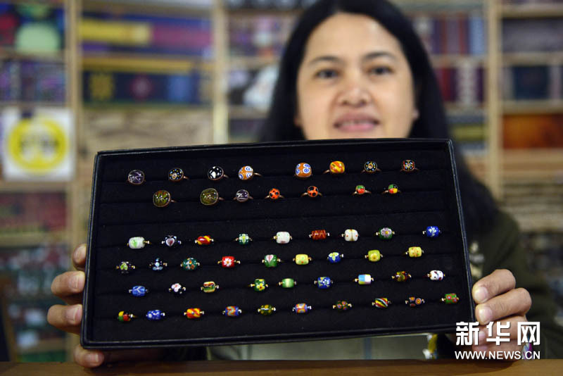 3月15日,臺東市“卡塔文化”經營者展示五彩繽紛的琉璃珠。