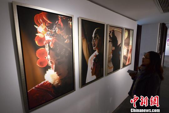 圖為一位參觀者在欣賞“牡丹亭”攝影展作品。 王思哲 攝