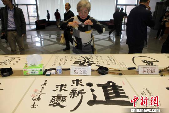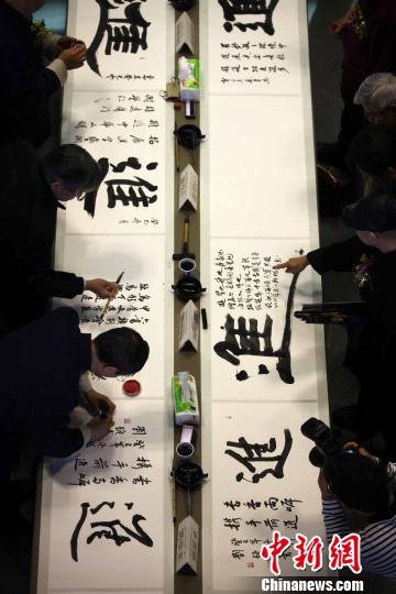 圖為閩臺知名書法家現場書寫的“進”字。 董會峰 攝