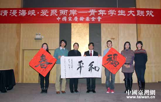 中國臺灣網1月23日北京消息 受中國宋慶齡基金會邀請,臺灣十大傑出青年基金會、臺灣夏潮基金會組派的2014年寒假兩岸青年公益交流活動于18日在京啟動。作為活動之一“情漫海峽·愛聚兩岸”兩岸青年學生大聯歡會于22日晚間舉行。來自臺北科技大學、高雄大學等19所高校的60余名青少年與中國人民大學、中國地質大學、北京交通大學等40余名大學生,在農歷小年前夜,歡聚一堂,共同度過一個愉快難忘的夜晚。