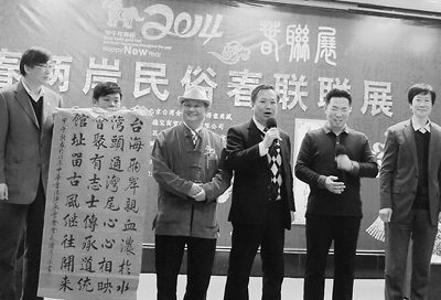 由北京市臺聯與得意典藏主辦的首屆“前門新春兩岸民俗春聯聯展”,近日在北京前門的臺灣會館啟動(見圖)。兩岸書法家一起創作書寫春聯,並在各家字號的門前展出臺灣老照片以及大陸藝術家赴臺採風剪紙,把前門商圈變成一座“活動的兩岸博物館”。係列活動一直持續到正月十五元宵節,市民可前往體驗欣賞。