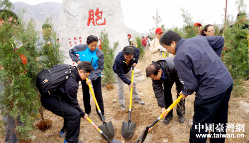 在京臺胞、臺商和臺生三百余人參加了此次公益植樹活動。(北京市臺聯 許俊章 攝)