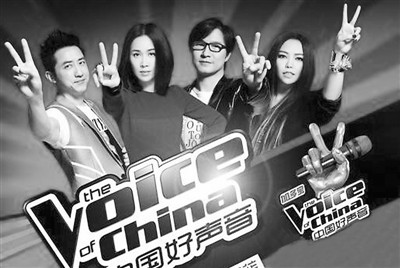 《中國好聲音》海報。藝人庾澄慶(左一)的加盟提升了該節目在臺灣的知名度。