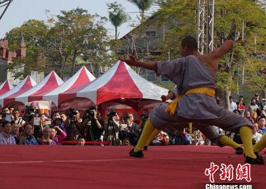 2月20日,在臺中市舉辦的第五屆海峽兩岸春節民俗廟會上,少林功夫表演臺灣觀眾如潮。李貴剛攝