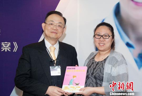 3月7日,北京寶島婦產醫院院長、臺灣婦產科及盆底醫學專家余堅忍在北京推出《中國孕媽膳食營養細致方案》一書,並向孕媽贈送新書。 鄭巧 攝