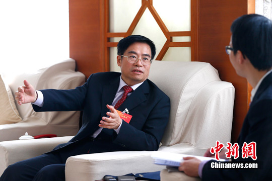 全國人大代表、中共莆田市委書記周聯清10日接受記者專訪。富田 攝