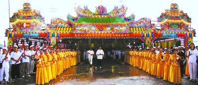 陳靖姑金身巡遊臺灣成為臺灣民間最隆重的節日,臺灣民眾在臺北市設立宏偉而隆重的行宮歡迎陳靖姑金身的到來,成為當地的一道風景線。杜新華 攝
