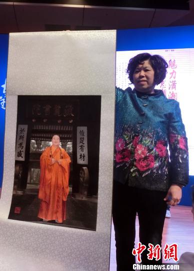 柳建新根據星雲大師在湖南岳麓書院講學留影繡制的湘繡作品。 鄧霞 攝
